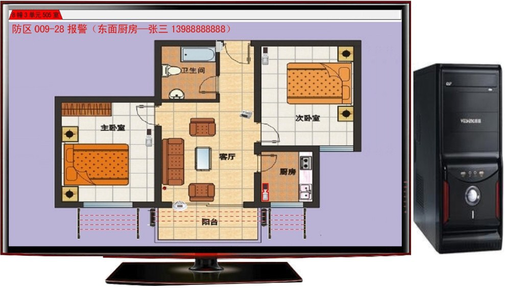 當遇到有入侵者來犯或預感到緊急事件將要發生,只要按下緊急報警按鈕,不管是整個區域還是各分區域內報警主機馬上拉響報警聲;同時這N個區域的報警系統信號通過GPRS、短信方式等多種方式把信號推送到后臺中控室值班崗,通過管理軟件以電子地圖形式進行統一管理。當PC的報警軟件接收到報警信號,該防區會自動彈跳出來,紅色顯示的防區可以明確的區分是突發事件,還是敵襲,或者是普通的偷盜事件發生,以便于第一時間派人到達現場處理,真正實現了一點觸發多點報警。使突發事件在發生前及時介入處理,所以值班崗必須要有人值守。