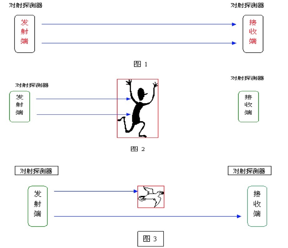 對(duì)射發(fā)射端發(fā)射肉眼看不見(jiàn)的經(jīng)過(guò)調(diào)制的紅外線,與之對(duì)準(zhǔn)放置一個(gè)紅外接收端,紅外線光束構(gòu)成了一道人眼看不見(jiàn)的封鎖線。當(dāng)有人穿越時(shí),同時(shí)完全阻擋2束紅外線時(shí),接收端收不到紅外光波,接收端產(chǎn)生無(wú)線報(bào)警信號(hào)并發(fā)送到報(bào)警主機(jī),報(bào)警主機(jī)接到報(bào)警信號(hào)后報(bào)警、電話報(bào)警等方式做出相應(yīng)的報(bào)警反應(yīng)。紅外線探測(cè)器有較高的抗干擾能力,大霧、暴雨、光擾、自由落體、小動(dòng)物穿越或無(wú)線干擾等一系列外界因素都能有效規(guī)避,降低誤報(bào)。
